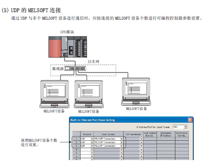 用到幾個(gè)GOT,就選設(shè)置幾個(gè)UDP。三菱QnUCPU用戶手冊(cè)(內(nèi)置以太網(wǎng)端口通訊篇)說明如下